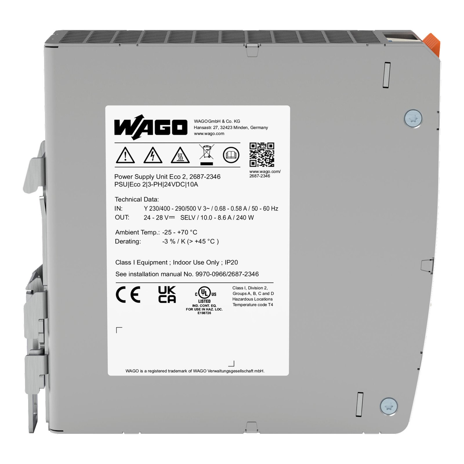 | Derating | −3 %/K (> 45 °C) |