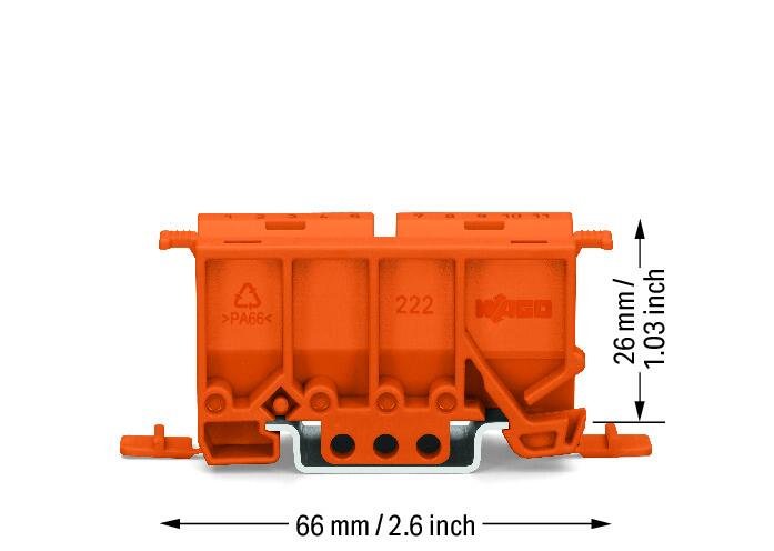 | Ứng dụng | Hỗ trợ lắp đặt các đầu nối 222 Series trên tủ điện hoặc thanh DIN |