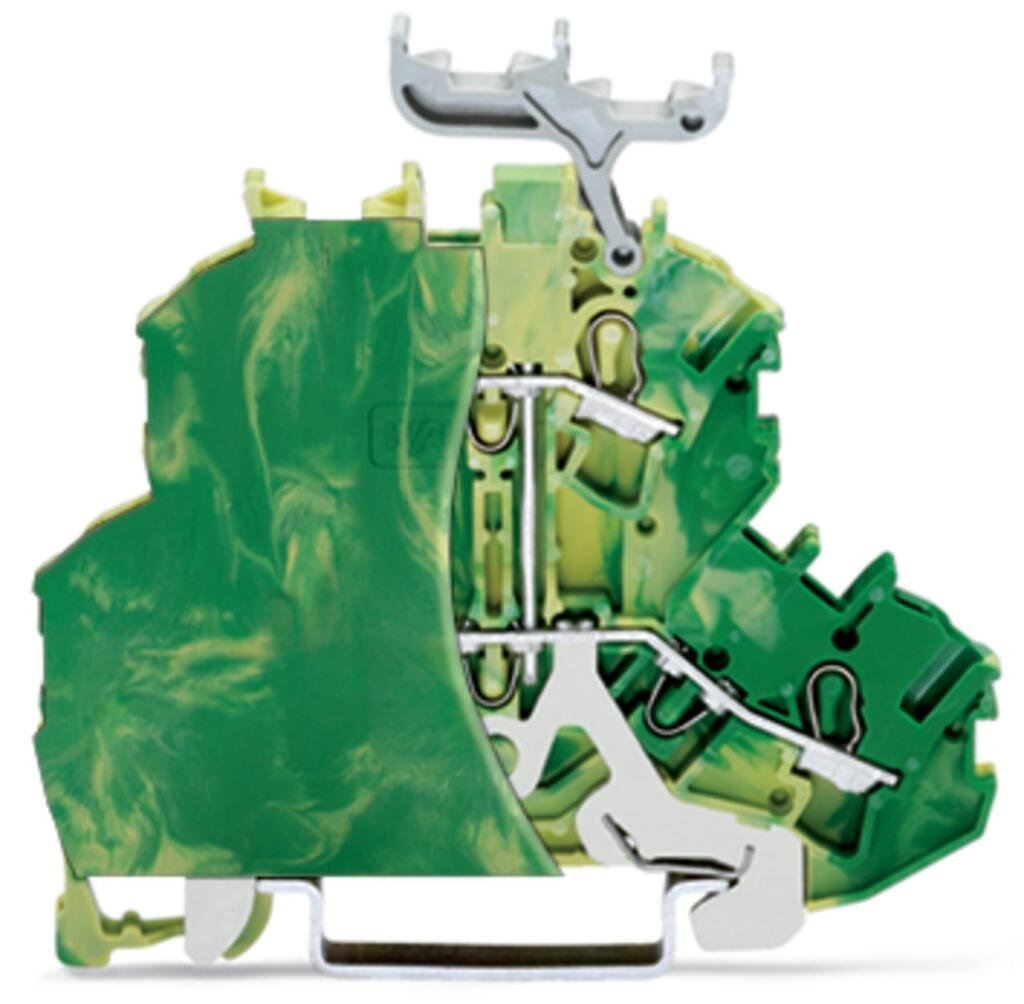 Double-deck terminal block; 4-conductor ground terminal block; with end plate; 2.5 mm²; PE; with marker carrier; internal commoning; for DIN-rail 35 x 15 and 35 x 7.5; Push-in CAGE CLAMP®; 2,50 mm²; green-yellow
