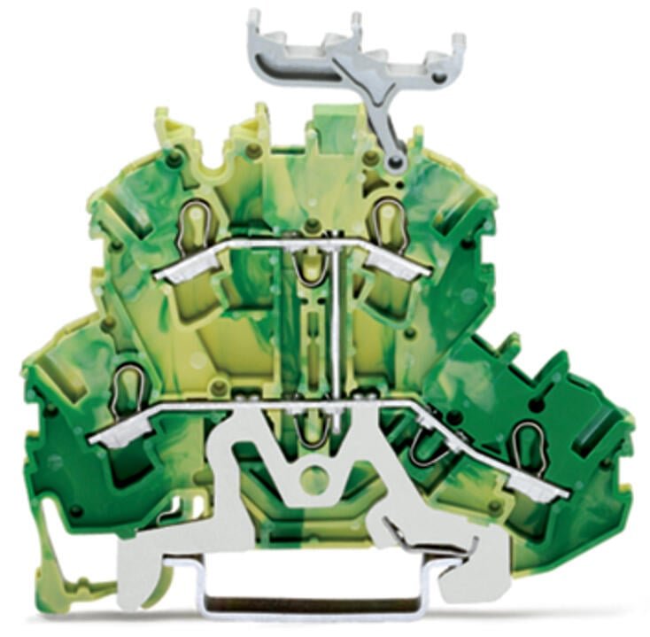 Double-deck terminal block; 4-conductor ground terminal block; 2.5 mm²; PE; suitable for Ex e II applications; with marker carrier; internal commoning; for DIN-rail 35 x 15 and 35 x 7.5; Push-in CAGE CLAMP®; 2,50 mm²; green-yellow