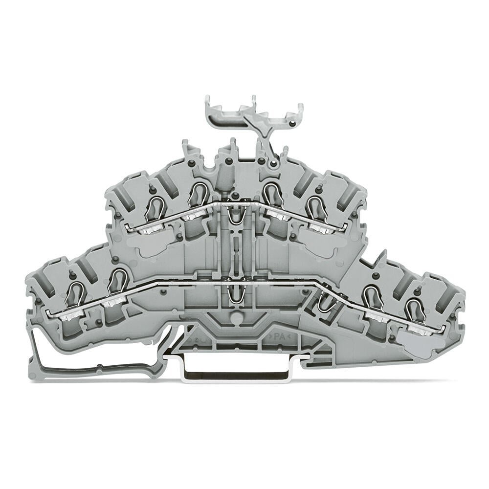 4-conductor double deck terminal block; Through/through terminal block; L/L; with marker carrier; for DIN-rail 35 x 15 and 35 x 7.5; 2.5 mm²; Push-in CAGE CLAMP®; 2,50 mm²; gray