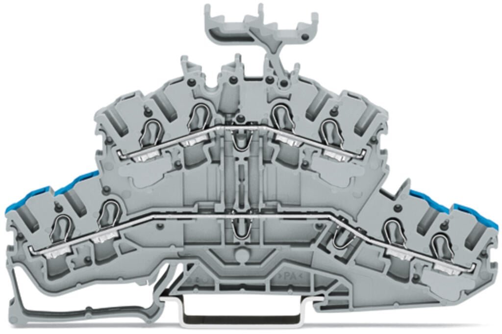 4-conductor double deck terminal block; Through/through terminal block; N/L; with marker carrier; Blue conductor entry lower deck; for DIN-rail 35 x 15 and 35 x 7.5; 2.5 mm²; Push-in CAGE CLAMP®; 2,50 mm²; gray