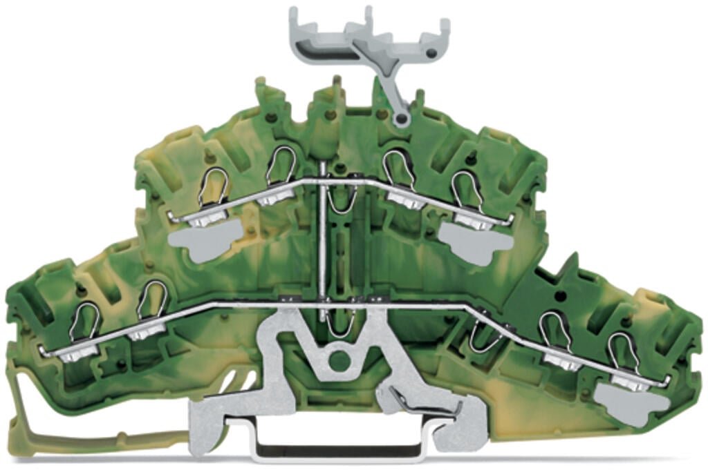 4-conductor double deck terminal block; 8-conductor ground terminal block; 2.5 mm²; PE; suitable for Ex e II applications; with marker carrier; internal commoning; for DIN-rail 35 x 15 and 35 x 7.5; Push-in CAGE CLAMP®; 2,50 mm²; green-yellow