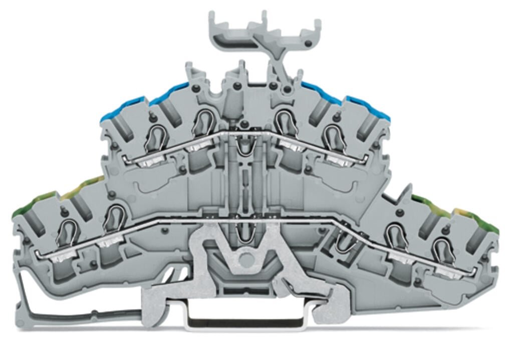 4-conductor double deck terminal block; Ground conductor/through terminal block; 2.5 mm²; PE/N; with marker carrier; Blue conductor entry upper deck; for DIN-rail 35 x 15 and 35 x 7.5; Push-in CAGE CLAMP®; 2,50 mm²; gray