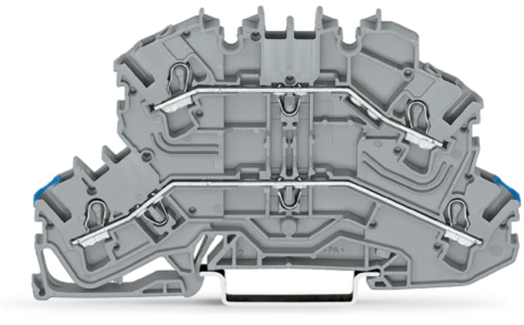 Double-deck terminal block; Through/through terminal block; same profile as double-deck disconnect terminal block; N/L; without marker carrier; Blue conductor entry lower deck; for DIN-rail 35 x 15 and 35 x 7.5; 2.5 mm²; Push-in CAGE CLAMP®; 2,50 mm²; gray