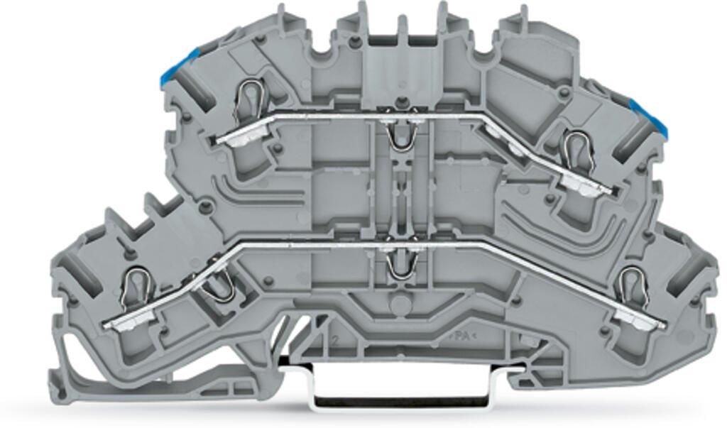 Double-deck terminal block; Through/through terminal block; same profile as double-deck disconnect terminal block; L/N; without marker carrier; Blue conductor entry upper deck; for DIN-rail 35 x 15 and 35 x 7.5; 2.5 mm²; Push-in CAGE CLAMP®; 2,50 mm²; gray