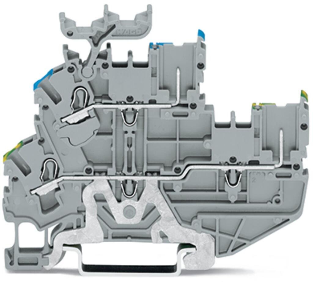 1-conductor/1-pin double deck receptacle terminal block; Ground conductor/through terminal block; 2.5 mm²; PE/L; suitable for Ex nA applications; without marker carrier; for DIN-rail 35 x 15 and 35 x 7.5; Push-in CAGE CLAMP®; 2,50 mm²; gray
