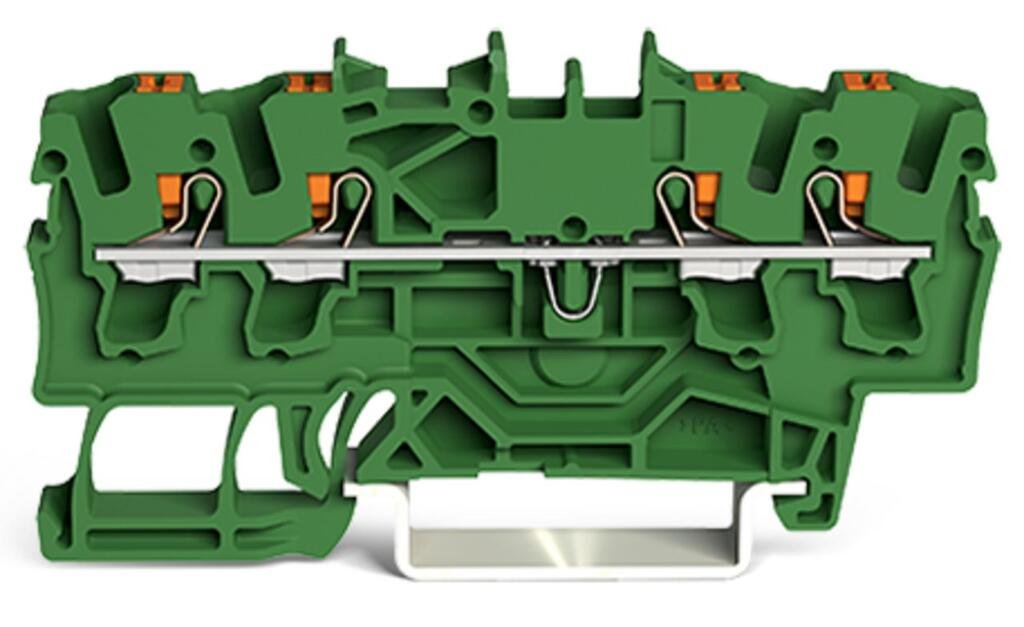 4-conductor through terminal block; with push-button; 2.5 mm²; with test port; suitable for Ex e II applications; side and center marking; for DIN-rail 35 x 15 and 35 x 7.5; Push-in CAGE CLAMP®; 2,50 mm²; green
