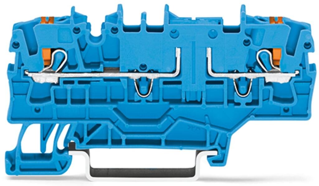 2-conductor through terminal block; with push-button; 2.5 mm²; with test option; with additional jumper position; same profile as 2-conductor disconnect terminal block; side and center marking; for DIN-rail 35 x 15 and 35 x 7.5; Push-in CAGE CLAMP®; 2,50 mm²; blue