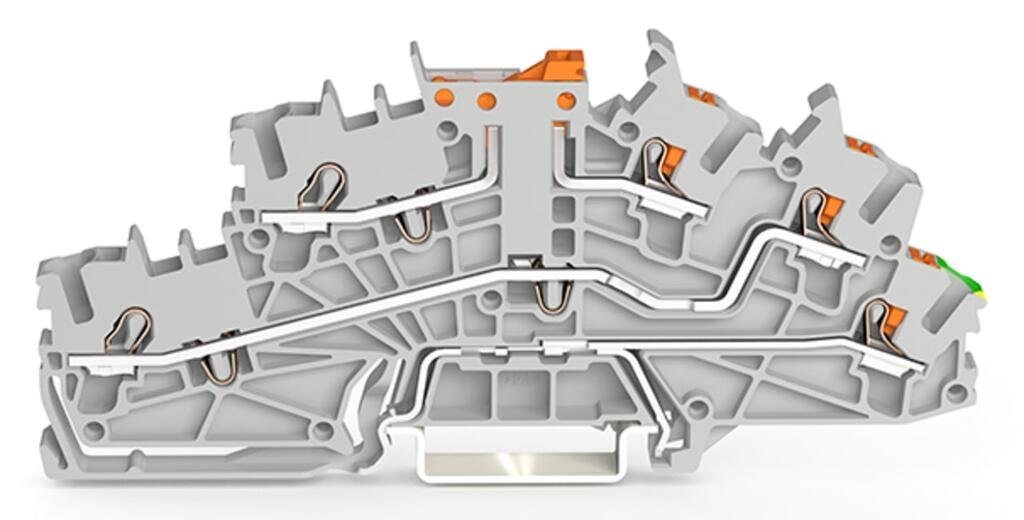 Multilevel installation terminal block; with operating slots and push-button; 2.5 mm²; with pivoting knife disconnect; LTi/L/PE; Push-in CAGE CLAMP®; 2,50 mm²; gray