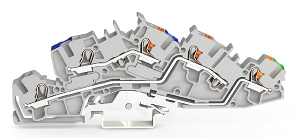 Multilevel installation terminal block; with operating slots and push-button; 4 mm²; N/L/PE; Push-in CAGE CLAMP®; 4,00 mm²; gray