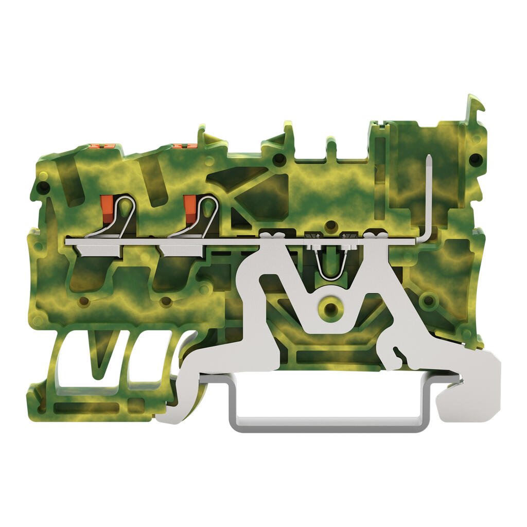 2-conductor/1-pin ground carrier terminal block; with push-button; 2.5 mm²; for DIN-rail 35 x 15 and 35 x 7.5; Push-in CAGE CLAMP®; 2,50 mm²; green-yellow