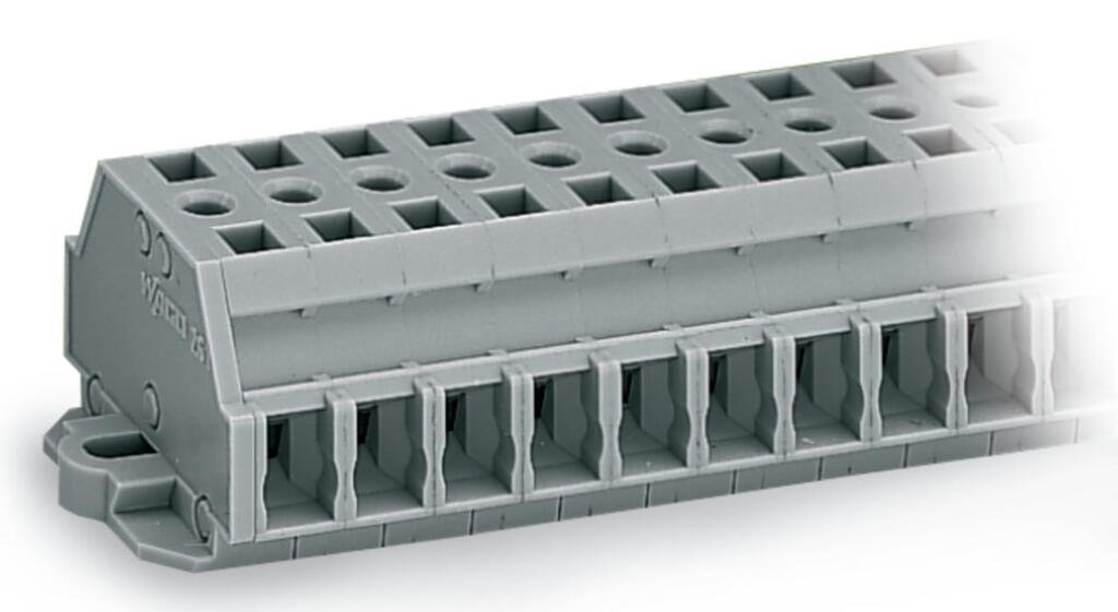 2-conductor terminal strip; without push-buttons; with fixing flanges; 9-pole; for screw or similar mounting types; Fixing hole 3.2 mm Ø; 2.5 mm²; CAGE CLAMP®; 2,50 mm²; gray