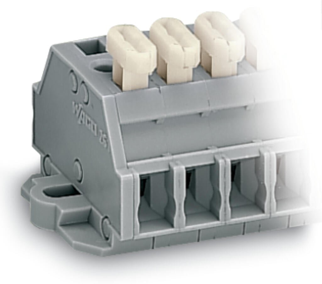 2-conductor terminal strip; on one side with push-buttons; with fixing flanges; 12-pole; for screw or similar mounting types; Fixing hole 3.2 mm Ø; 2.5 mm²; CAGE CLAMP®; 2,50 mm²; gray