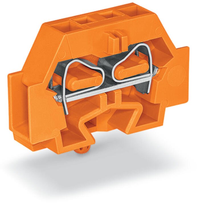 2-conductor terminal block; without push-buttons; with snap-in mounting foot; 1-pole; for plate thickness 0.6 – 1.2 mm; Fixing hole 3.5 mm Ø; 4 mm²; CAGE CLAMP®; 4,00 mm²; orange