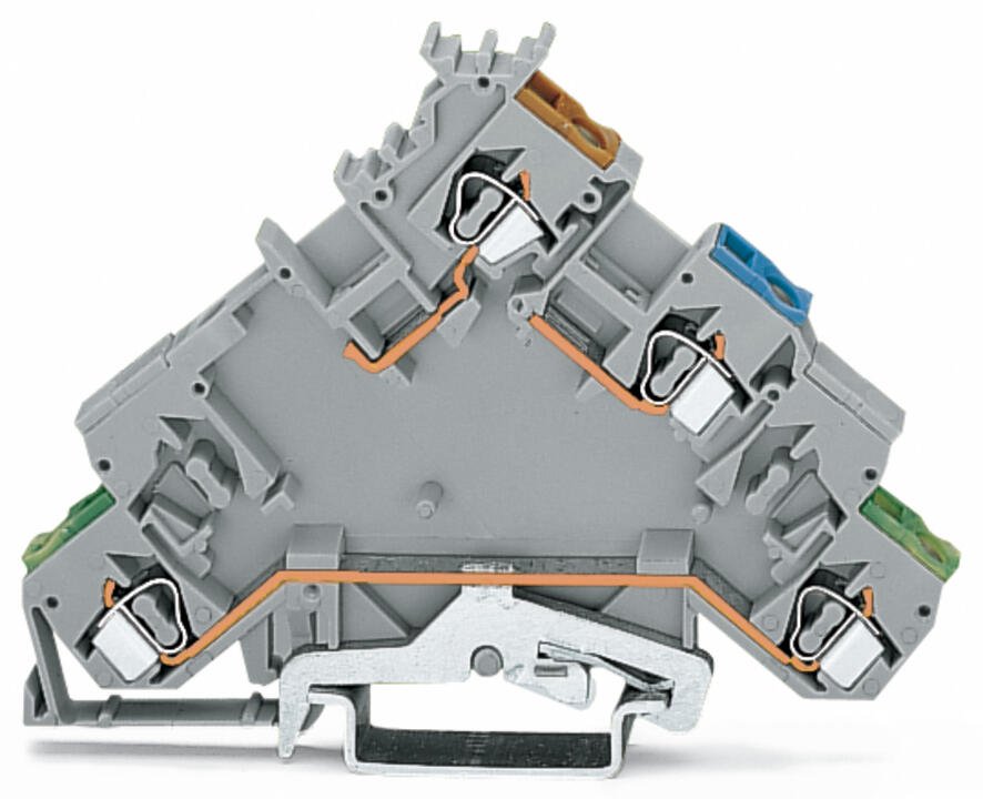 4-conductor sensor supply terminal block; with ground contact; with colored conductor entries; 2.5 mm²; CAGE CLAMP®; 2,50 mm²; gray