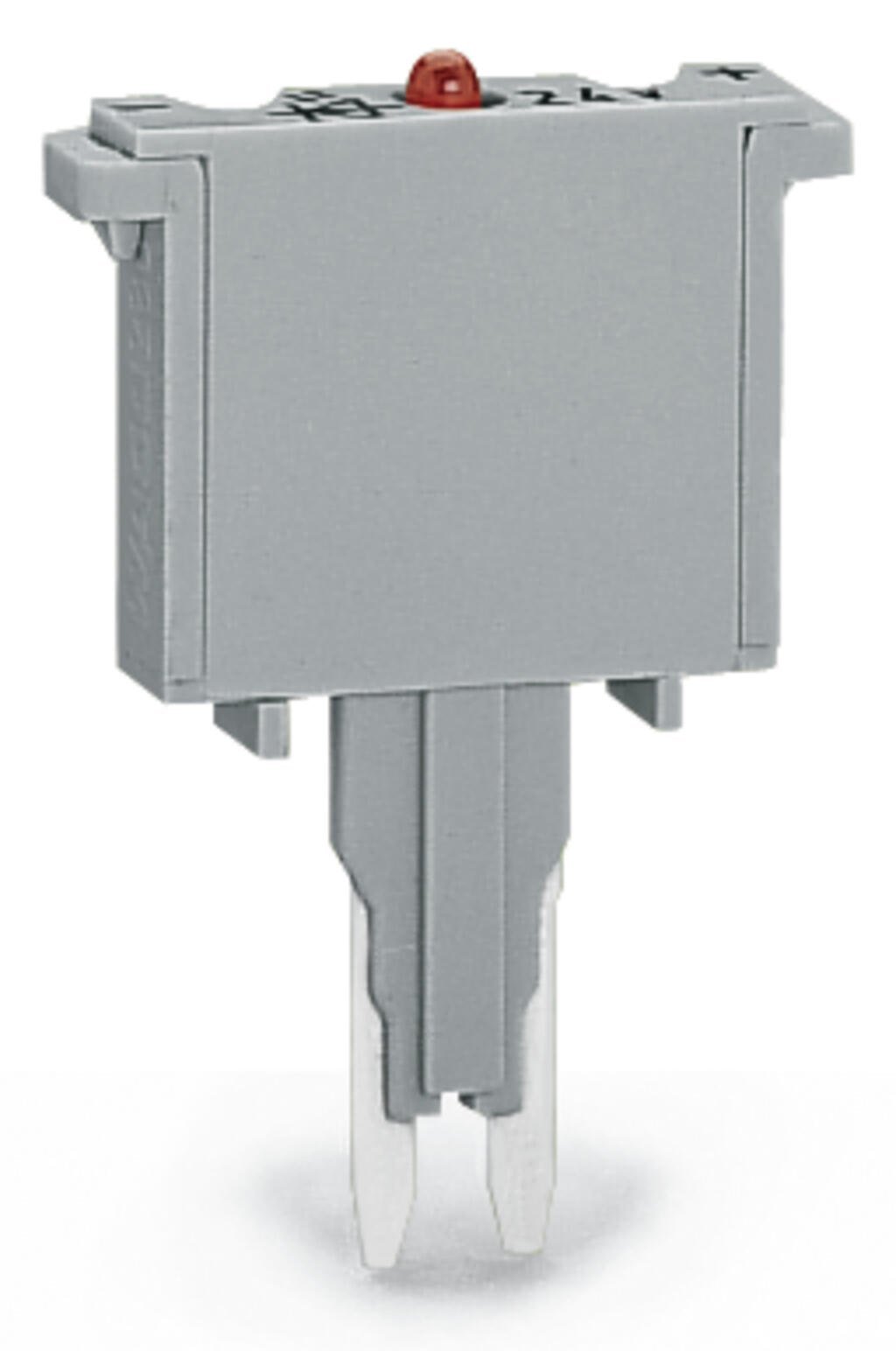 Fuse plug; with soldered miniature fuse; with indicator lamp; LED (red); AC 15 – 30 V; 500 mA FF; 5 mm wide; gray