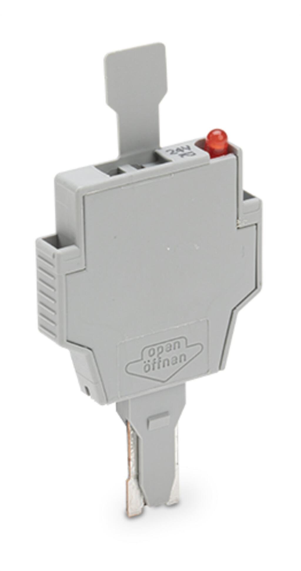 Fuse plug; with pull-tab; for miniature metric fuses 5 x 20 mm and 5 x 25 mm; with LED indicator; 24 V AC/DC; 6 mm wide; gray