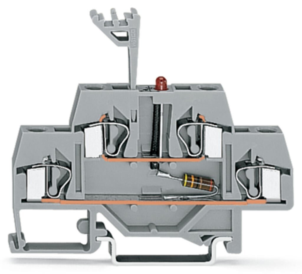 Component terminal block; double-deck; LED (red); 24 VDC; for DIN-rail 35 x 15 and 35 x 7.5; 4 mm²; CAGE CLAMP®; 4,00 mm²; gray