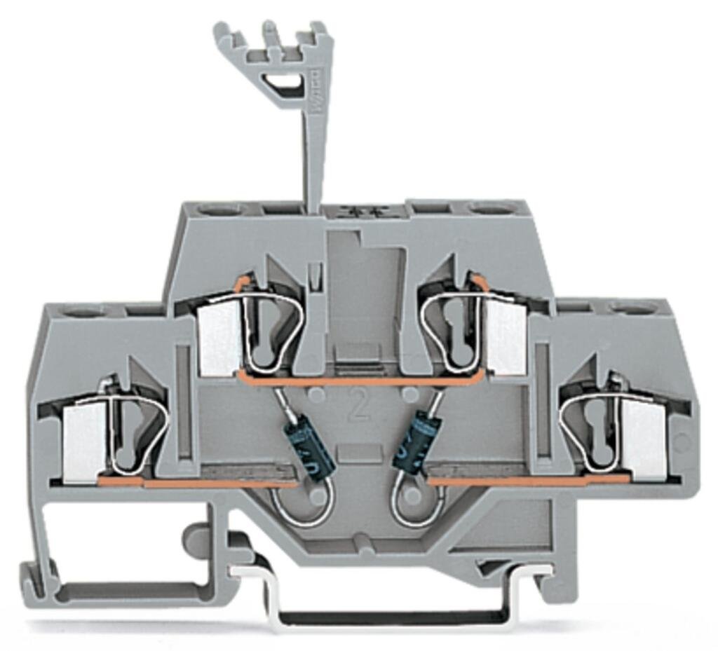 Component terminal block; double-deck; with 2 diodes 1N4007; Bottom anode; for DIN-rail 35 x 15 and 35 x 7.5; 4 mm²; CAGE CLAMP®; 4,00 mm²; gray