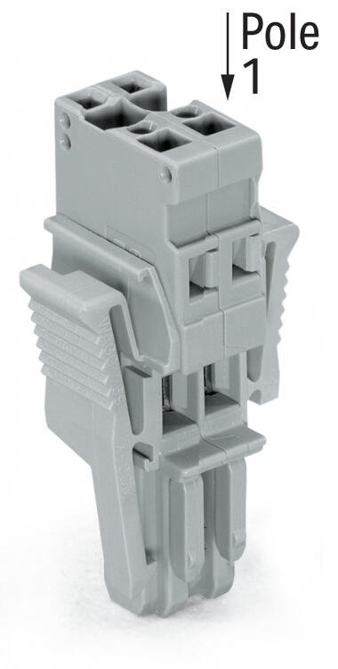 1-conductor female connector; CAGE CLAMP®; 4 mm²; Pin spacing 5 mm; 2-pole; coding finger; Lateral locking levers; 4,00 mm²; gray