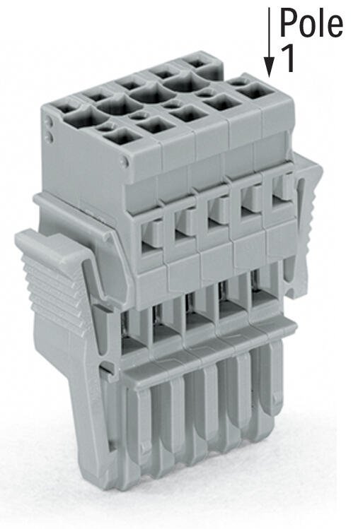 1-conductor female connector; CAGE CLAMP®; 4 mm²; Pin spacing 5 mm; 5-pole; coding finger; Lateral locking levers; 4,00 mm²; gray