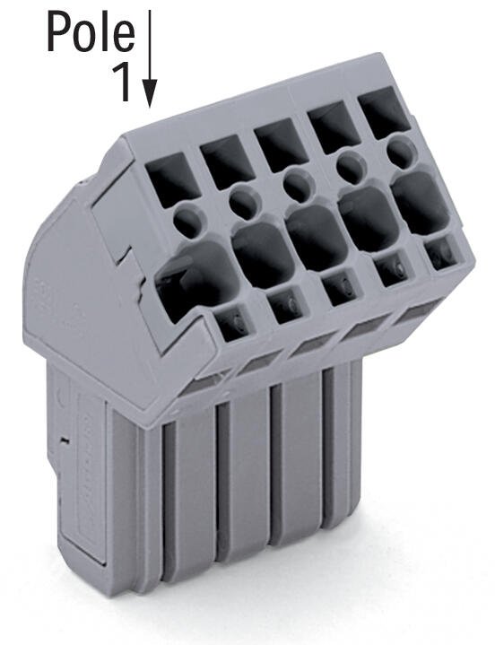 1-conductor female connector, angled; CAGE CLAMP®; 4 mm²; Pin spacing 5 mm; 5-pole; coding finger; 4,00 mm²; gray
