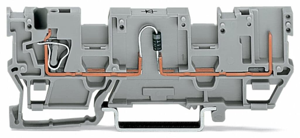 1-conductor/1-pin component carrier terminal block; with 2 jumper positions; with diode 1N4007; anode, right side; for DIN-rail 35 x 15 and 35 x 7.5; 4 mm²; CAGE CLAMP®; 4,00 mm²; gray