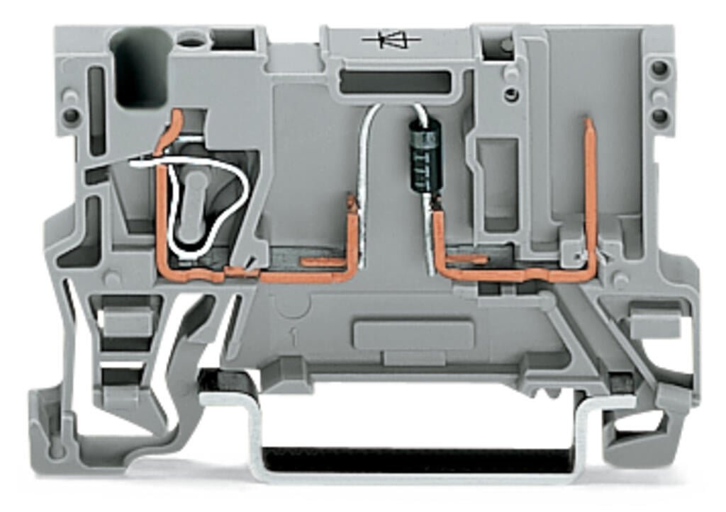 1-conductor/1-pin component carrier terminal block; with diode 1N4007; anode, right side; for DIN-rail 35 x 15 and 35 x 7.5; 4 mm²; CAGE CLAMP®; 4,00 mm²; gray