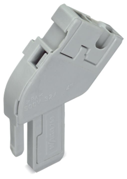 Start module for 1-conductor female connector; angled; CAGE CLAMP®; 4 mm²; Pin spacing 5 mm; 1-pole; coding finger; with integrated end plate; 4,00 mm²; gray