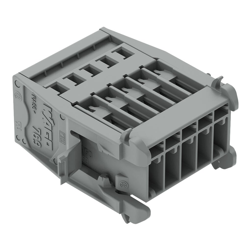1-conductor male connector; CAGE CLAMP®; 4 mm²; Pin spacing 5 mm; 5-pole; Snap-in flange; 4,00 mm²; gray