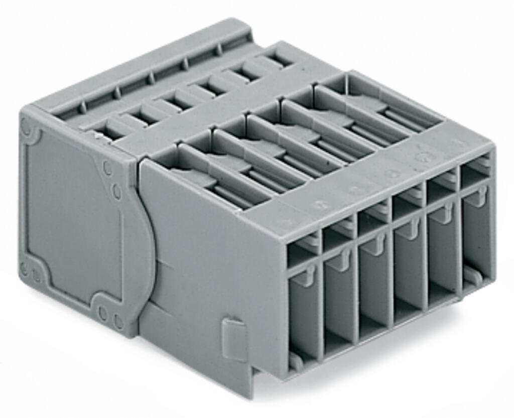 1-conductor male connector; CAGE CLAMP®; 4 mm²; Pin spacing 5 mm; 6-pole; DIN-35 rail/panel mounting; Snap-in mounting feet; 4,00 mm²; gray