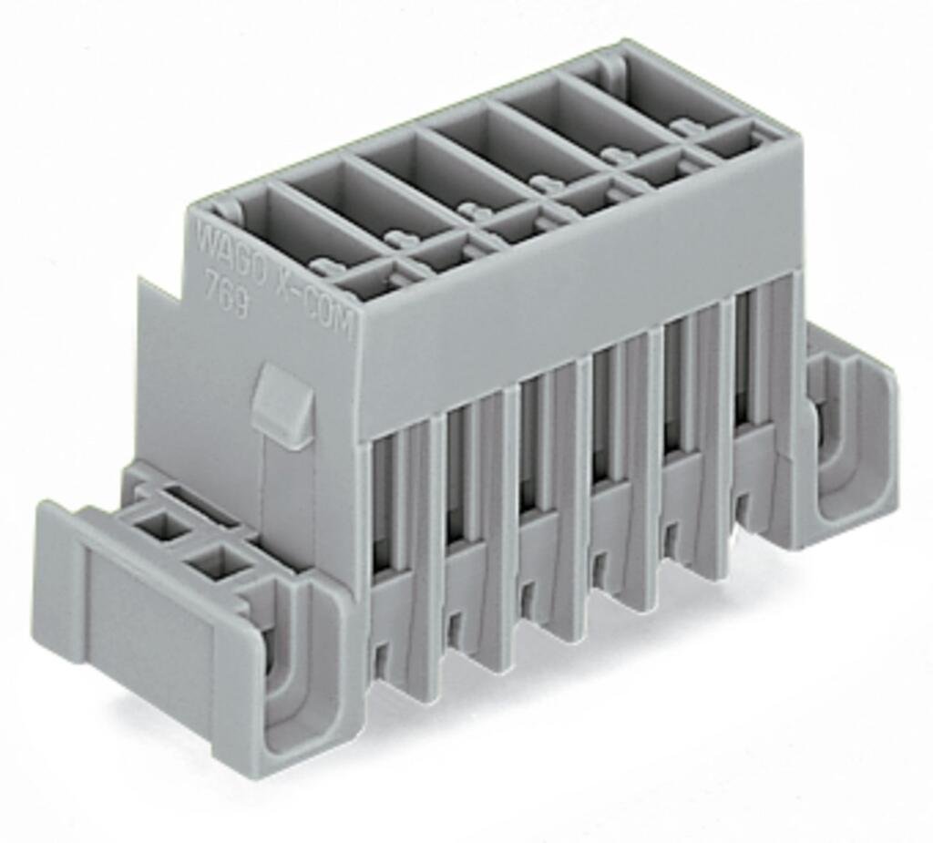 THT male header; 1.0 x 1.0 mm solder pin; straight; clamping collar; Pin spacing 5 mm; 2-pole; gray